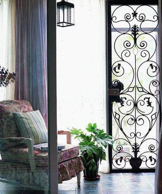 1、阳台顶部可沿用中国传统建筑中“吊梁”的工艺手法,做出两道红榉木的“假梁”。而墙壁采用外墙花砖,地面则是色彩朴素的西班牙地砖。在铁艺暖气罩的上方墙面上,特别采用了“板岩”做装饰。这样内外结合、深浅有致的设计,使整个阳台的气氛与众不同。