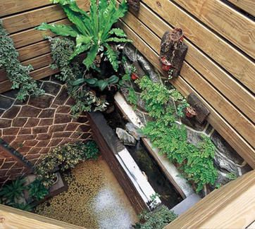 2、如果是阳台面积较大又位于顶楼,应该属于“露台”。可在阳台上加了透明的弧形采光顶,使这个阳台可以当作一个房间使用。阳光通过采光板洒向用韩国文化石做的墙壁,以及青石板铺成的地面,而且也照亮了“人”字型的鹅卵石小径……这些园林造景手法,用在这个阳台上,给人浓浓的休闲气息。